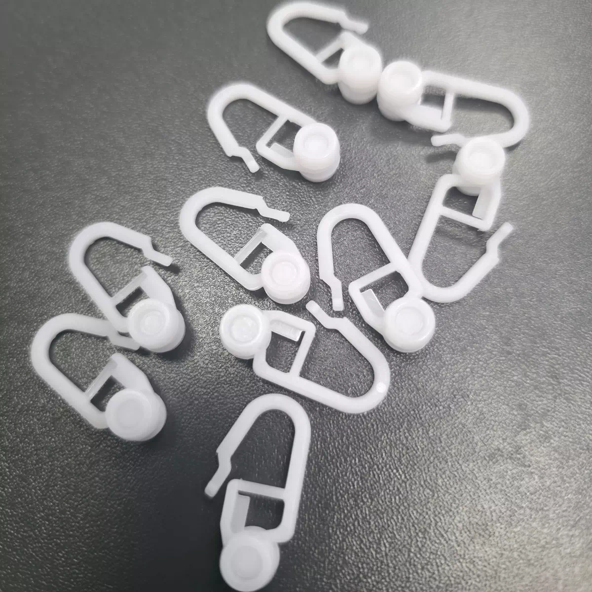Białe, elastyczne agrafki/ślizgi do szyn sufitowych z PCV. Zapewniają płynne i ciche przesuwanie firan oraz zasłon na taśmie marszczącej. Idealne do większości standardowych szyn sufitowych PCV.