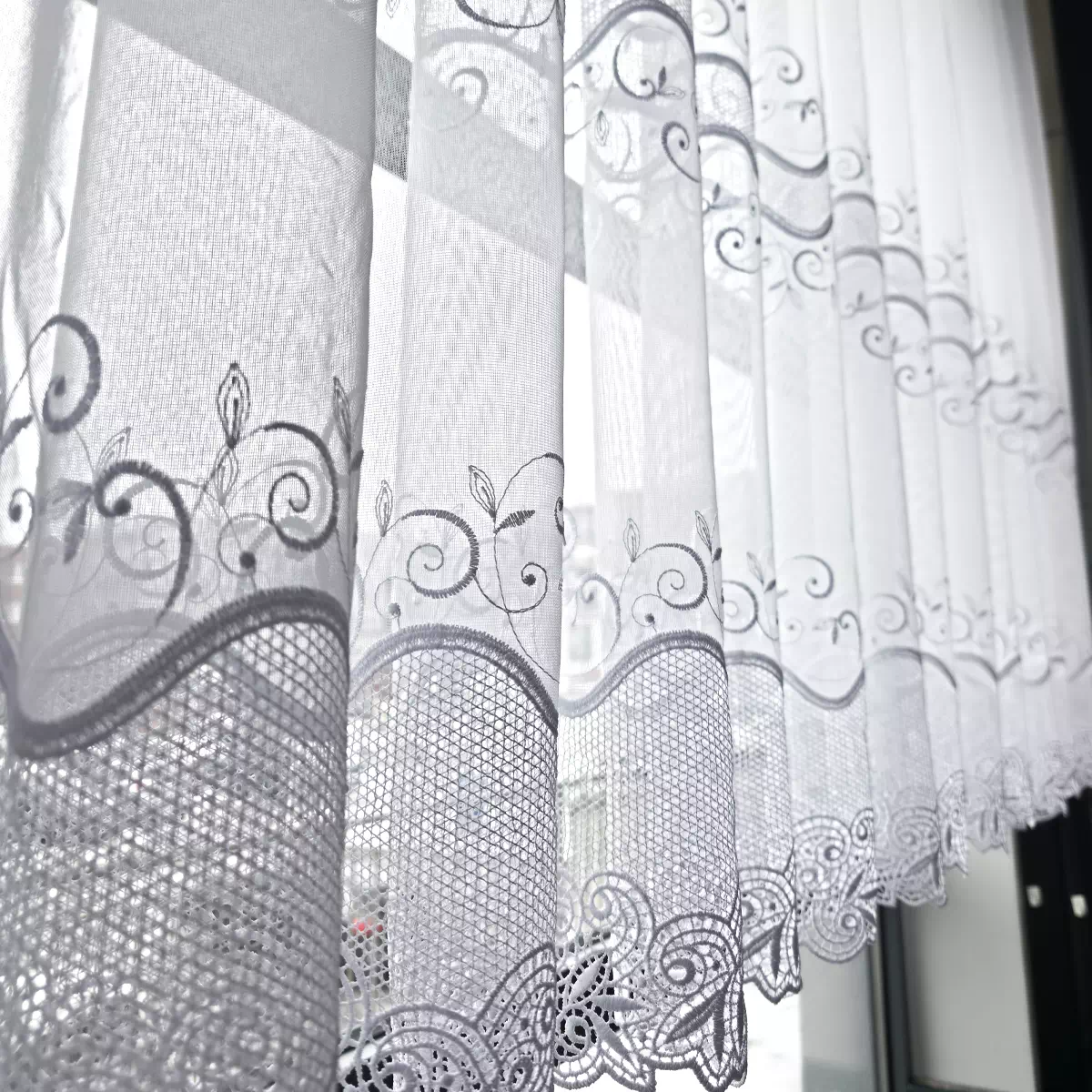 Odkryj subtelne piękno nowości w naszej kolekcji – firany "Natalia". To model stworzony dla osób, które szukają równowagi pomiędzy bogatym zdobieniem a wizualną lekkością. "Natalia" to połączenie trwałej, eleganckiej markizety z dwoma pasami haftowanej gipiury, która odmieni każde wnętrze, dodając mu klasy i blasku. Ten klasyczny, a zarazem efektowny wzór doskonale sprawdzi się zarówno w salonie, sypialni, jak i pokoju dziennym czy kuchni.